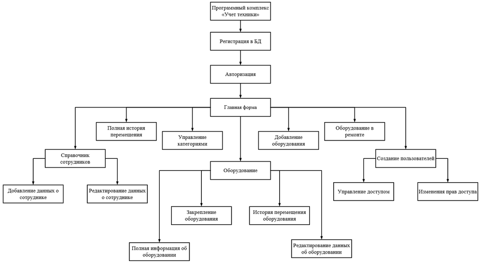 Рисунок 16 – Архитектура связей форм графического интерфейса информационной системы учета техники
