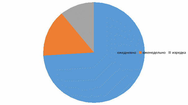 В ходе опроса было выявлено, что 74% опрошенных ежедневно пользуются интернетом, 15% - еженедельно и 11% - изредка.
