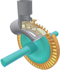 Тип теплового роторного двигателя, в котором давление расширяющихся газов воспринимают вращающиеся на валу лопасти (пример на рисунке 1.4).
