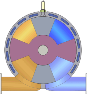 При вращении ротора в одном направлении лопасти совершают колебания друг относительно друга, создавая замкнутые внутри цилиндра объемы переменной величины.