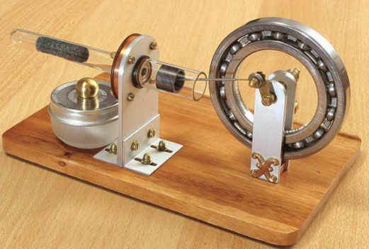 Двигатель Стирлинга — это машина, работающая по замкнутому термодинамическому циклу, в которой циклические процессы сжатия и расширения происходят при различных уровнях температур, а управление потоком рабочего тела осуществляется путем изменения его объема. Этот принцип положен в основу преобразования теплоты в работу или, наоборот, работы в теплоту. Инженеры подразделяют двигатели Стирлинга как Альфа - Стирлинг, Бета – Стирлинг, Гамма – Стирлинг. В своей работе я представлю термоакустический двигатель Стирлинга (пример на рисунке 2.1).