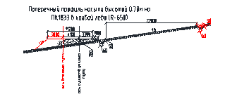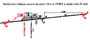 | Сужение земляного полотна (уменьшение расстояния от оси пути до бровки) | То же | Промеры через 50 м |