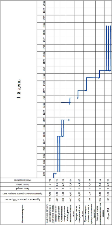 | | Рисунок 2.12 – Календарный план-график ремонтного процесса ремонта тяговых электродвигателей | |||