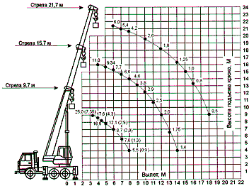 Рис.2.2. График грузоподъемности крана в зависимости от наличия и вылета стрелы