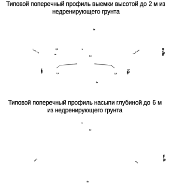 Рис. 1.5. Поперечные профили насыпей и выемок