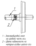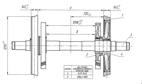 Рисунок Б1 – Колесная пара электровоза: 1 – бандаж; 2 – зубчатое колесо; 3 – ось; 4 – колесный центр