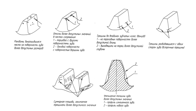 Рисунок Б7 – Дефекты венцов зубчатого колеса