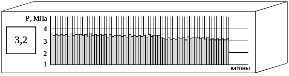 Из примера видно, что цифровое табло показывает давлении воздуха в хвостовом вагоне 3,2 МПа.