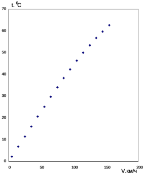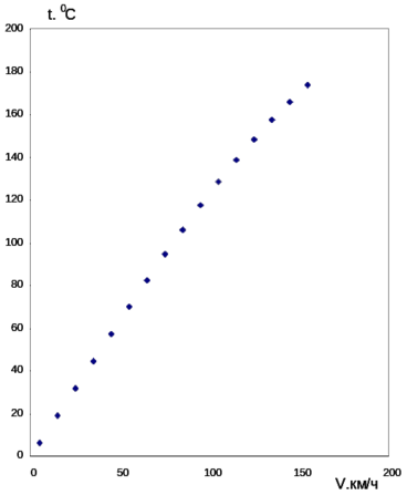 Рисунок 1.6. - График зависимости температуры нагрева колеса от скорости.