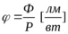 где Ф - световой поток, излучаемый лампой, Ф [лм];