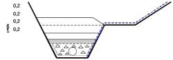 Траншея заглубляется до проектной отметки. При этом дно траншеи должно иметь уклон не менее 0,002, обеспечивая сток воды. Ручная доработка в объеме до 10% от механизированных работ выполняется звеном дорожных рабочих.