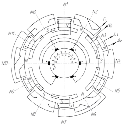 Рисунок 3.1 – Схема соединения полюсных катушек НБ-514 (вид со стороны коллектора) [1]