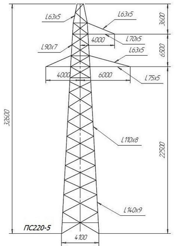 В качестве анкерно-угловых опор приняты одноцепные унифицированные решетчатые опоры У220-1 [2].