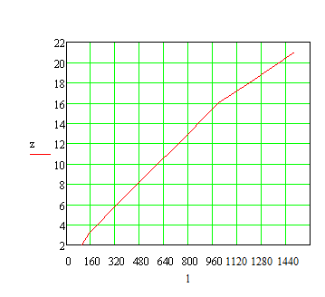 воспользуемся линейной интерполяцией построив зависимость данного расстояния от длины пролета по значениям из методических указаний [7]: