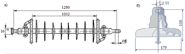 Рисунок 6.1 - Эскизы изоляторов: а) ЛК 70/220-А-3; б) ПС-120Б.