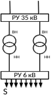 Техническим заданием рекомендуется принять РУ 35/6 кВ по схеме 35-4Н (два блока с выключателями и неавтоматической перемычкой со стороны линий).