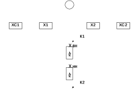 Так как сопротивления обмоток известны, можно определить результирующее сопротивление до второй точки короткого замыкания К2, аналогично точке К1, Ом: