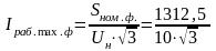 Максимальный рабочий ток для питающих вводов подстанции, А: