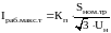 В приведенных формулах Kп = 1,4 ÷ 1,5 – коэффициент перегрузки трансформатора, фидера; Sном.тр, – номинальная мощность трансформатора, кВА, Sном.ф – номинальная мощность фидера, кВА; Uн – номинальное напряжение ступени, кВ.