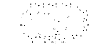 Выберем для направленного графа (рисунке 5.2) в качестве балансирующего узел m, после чего составим матрицы инциденций M и N, матрицы сопротивлений в ветвях и диагональной матрицы сопротивлений. Матрица M содержит количество строк, равное количеству узлов без балансирующего и количество столбцов, равное количеству ветвей. Элементы матрицы M принимают три значения: если узел является началом вершиной ветви, то элемент матрицы mij=+1, если конечной, то mij=-1, а если узел не является вершиной ветви, то mij=0. Матрица N содержит столбцов столько, сколько ветвей, а строчек – сколько независимых контуров. Ее элементы также могут принимать три значения: если ветвь входит в контур и их направления совпадает, то mij=+1, если ветвь входит в контур и их направления не совпадает, то mij=-1, если ветвь не входит в контур, то mij=0.