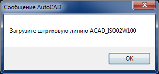Важно отметить, что для правильной работы данных процедур необходимо, чтобы был подгружен штриховой тип линий с названием «ACAD_ISO02W100». В противном случае, при попытке простановки координат для какого-либо элемента программа выведет сообщение об ошибке с просьбой загрузить штриховую линию (рисунок 26).
