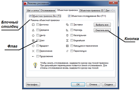 Файлы, написанные на языке управления диалогом (DCL), содержат описание, определяющее внешний вид диалоговых окон, отображаемых на экране. Диалоговые окна включают в себя кнопки, раскрывающиеся списки, флаги, переключатели, пиктограммы и другие элементы управления, организованные в строки или столбцы. Практически любое диалоговое окно можно разделить на отдельные элементы управления, как например окно режимов рисования (рисунок 29).