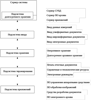 Подсистему ввода сканированных документов, включающую средства перевода документов в электронный вид, средства обработки изображений, средства ввода в систему электронного архива.