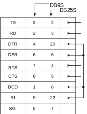 Для более достоверного тестирования рекомендуется использовать внешнюю заглушку, подключаемую к разъему СОМ-порта. В отличие от LРТ-порта у СОМ-порта количество входных сигналов превышает количество выходных, что позволяет выполнить полную проверку всех цепей быстрее и качественней. Заглушка соединяет выход приемника с входом передатчика. Обязательная для всех схем заглушек перемычка RTS-CTS позволяет работать передатчику — без нее символы не смогут передаваться. Выходной сигнал DTR обычно используют для проверки входных линий DSR, DCDnRI.