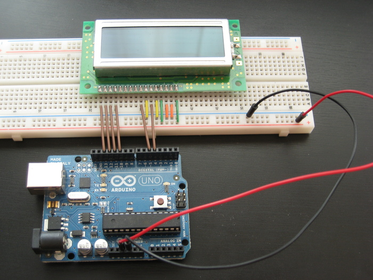 третий – контрастность. Для получения максимально контрастного изображения соедините его с шиной земли. Вы можете подать на этот контакт произвольное напряжение от 0 до 5 В, чем оно выше, тем тусклее будет изображение, но вместе с этим снизится энергопотребление. Для возможности плавной регулировки контрастности можете подать на этот контакт выходной сигнал потенциометра.
