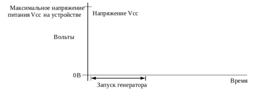 Как только напряжение питания микроконтроллера станет выше Vсс, тактовый генератор начнет генерацию сигнала. Время, необходимое для запуска генератора, зависит от большого числа факторов: