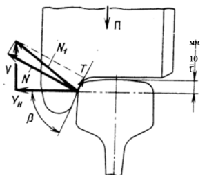 от силы нормального давления колеса на рельс. Результирующую этих двух сил