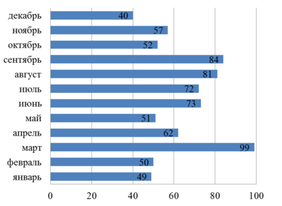 На рисунке 1.4 представлен износ колесных пар за 2014 год, а на рисунке 1.5 – износ колесных пар за 2015 год.