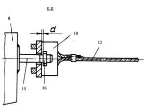 Рисунок 2.13 – Сечение Б-Б: 8 – поперечные балки; 10 – двуплечный рычаг; 12 – гибкие тяги; 15 – шпилька; 16 - гайка