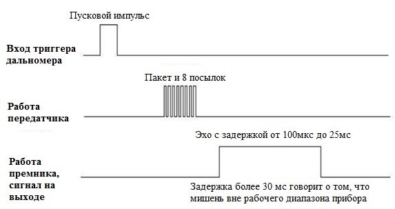 Временная диаграмма работы датчика HC-SR04 показана на рисунке 4.5.