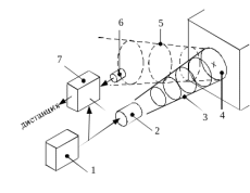 5 – отраженная волна (эхо); 6 – ультразвуковой приемник; 7 – вычислитель