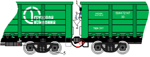 Рисунок 4.10 – Схема монтажа датчиков на вагоны: 1 – бортовой измерительный блок;