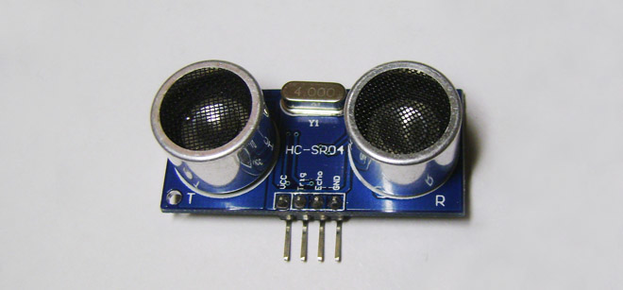 В системе применён ультразвуковой датчик HC-SR04, позволяющий измерять расстояние до преграды в диапазоне от 2 до 400 см [20]. Он представляет собой плату, на которой размещены излучатель и приемник ультразвука и управляющая электронная схема. Датчик, изображенный на рисунке 4.4, имеет небольшие габариты и простой интерфейс: два вывода питания, один вход и один выход.