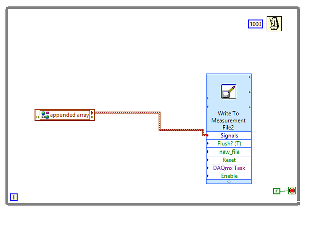 Запись данных в файл выполняется на компьютере оператора, для чего создан еще один виртуальный прибор, изображенный на рисунке 5.7.