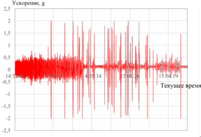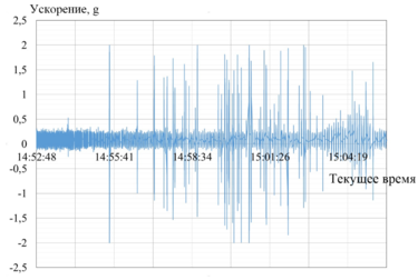 Рисунок 6.1 – График с значениями ускорений, записанными на ведомом локомотиве