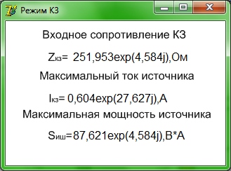 Рисунок 2.22 – Окно результатов расчета режима короткого замыкания кодовой рельсовой цепи
