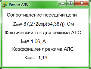 Рисунок 2.23 – Окно результатов расчета режима АЛСН кодовой рельсовой цепи