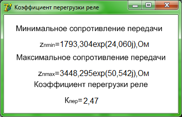 Рисунок 2.16 – Окно результатов расчета коэффициента перегрузки реле