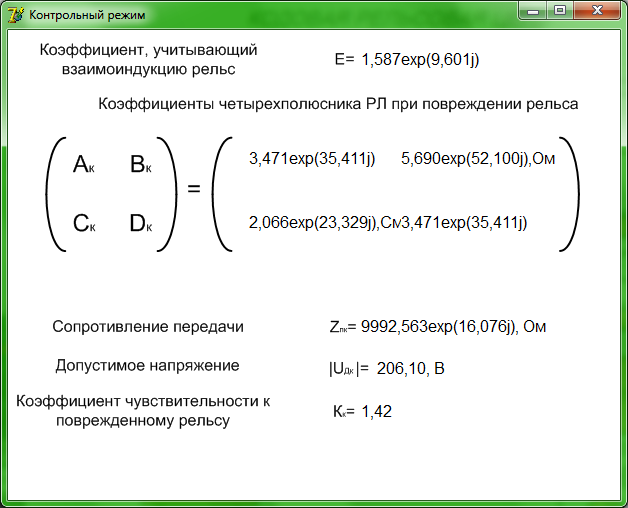 Окно с результатами расчета контрольного режима кодовой рельсовой цепи представлено на рисунке 2.21.