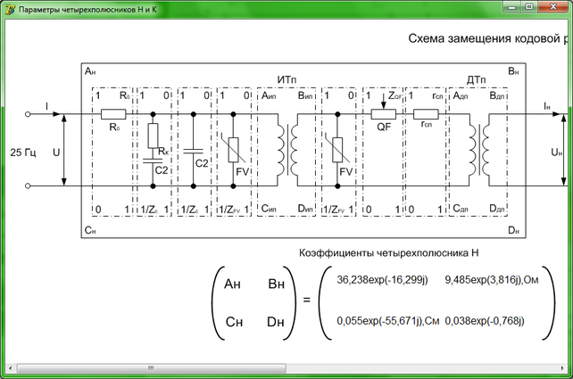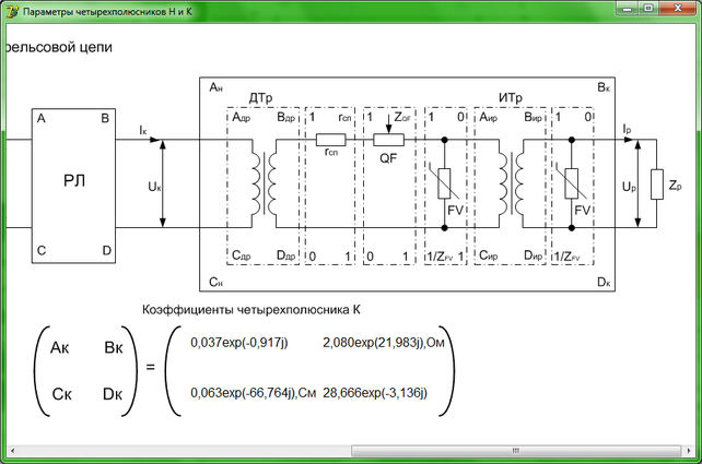 Рисунок 2.15 – Окно программы расчета коэффициентов четырехполюсников аппаратуры начала (Н) и конца (К) рельсовой цепи