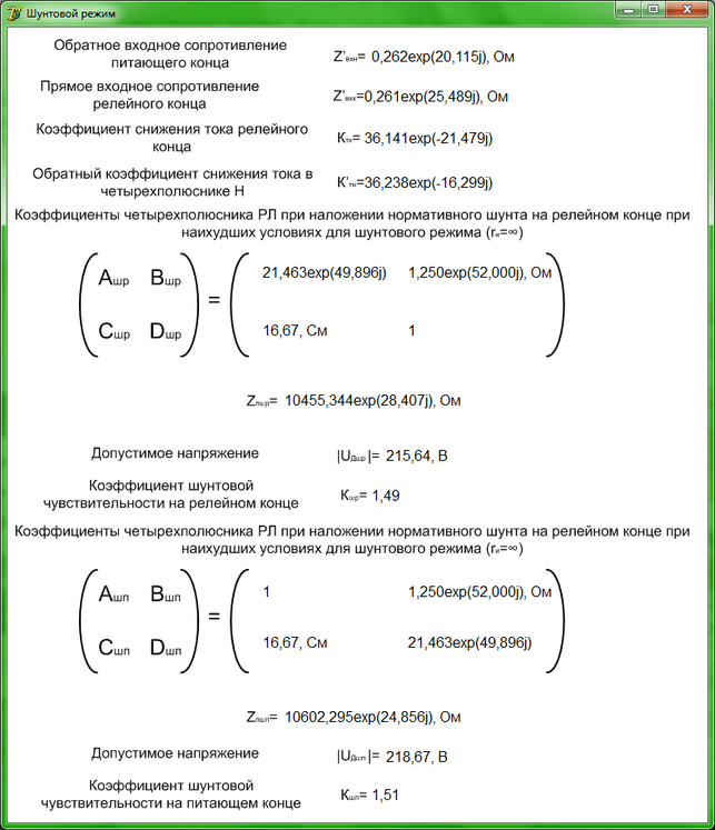Рисунок 2.19 – Окно результатов расчета шунтового режима работы кодовой рельсовой цепи