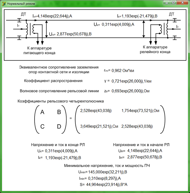 .Рисунок 2.17 – Окно результатов расчета нормального режима работы кодовой рельсовой цепи