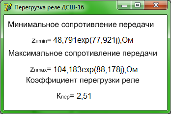 ZР = 400ej68° Ом – входное сопротивление реле типа ДСШ-16;
