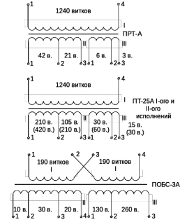 Рисунок 2.25 – Схемы обмоток путевых трансформаторов