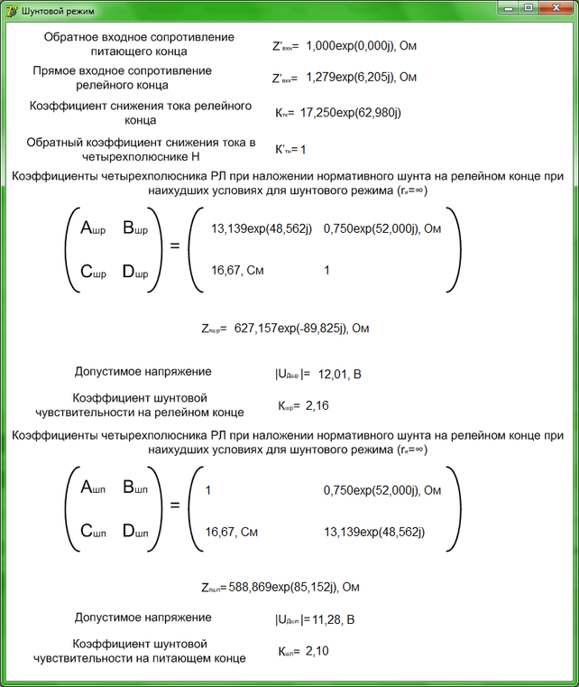 Для вычисления ZПШР необходимо рассчитать коэффициенты рельсового четырехполюсника при наложении нормативного шунта на релейном конце