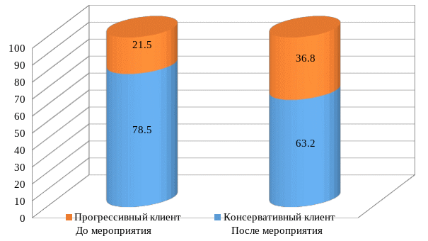 | Клиентская группа «Консервативный клиент» | 4419 | 78,5 | 4329 | 63,2 | -90 | 98 |